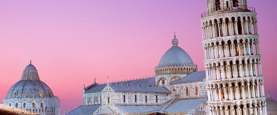 Этрусское поселение в начале I-го тысячелетия до Р.Х. в XI в. после Р.Х. Пиза — могучая морская республика, разгромившая сарацинов в гавани Палермо в день св. Сикста в 1118 г. Этот день до сих пор является официальным праздником города. Трофеи, захваченные у неверных, было решено вложить в строительство собора. Позднее рядом с собором приступили к возведению крестильни, редкой для Италии, круглой формы (1152г.), колокольни (1173 г.), более известной под названием «Падающая башня» и ставшей символом Пизы, монументального кладбища «Святое поле» (1278 г.). Весь архитектурный ансамбль построен в оригинальном, возникшем именно в Пизе, стиле, представляющем собой сплав архитектуры Запада с архитектурными и орнаментальными элементами Востока, получившим название романо-пизанского стиля. Ослепительная красота этой площади поддерживает в веках память о блистательном прошлом бывшей владычицы Средиземноморья.